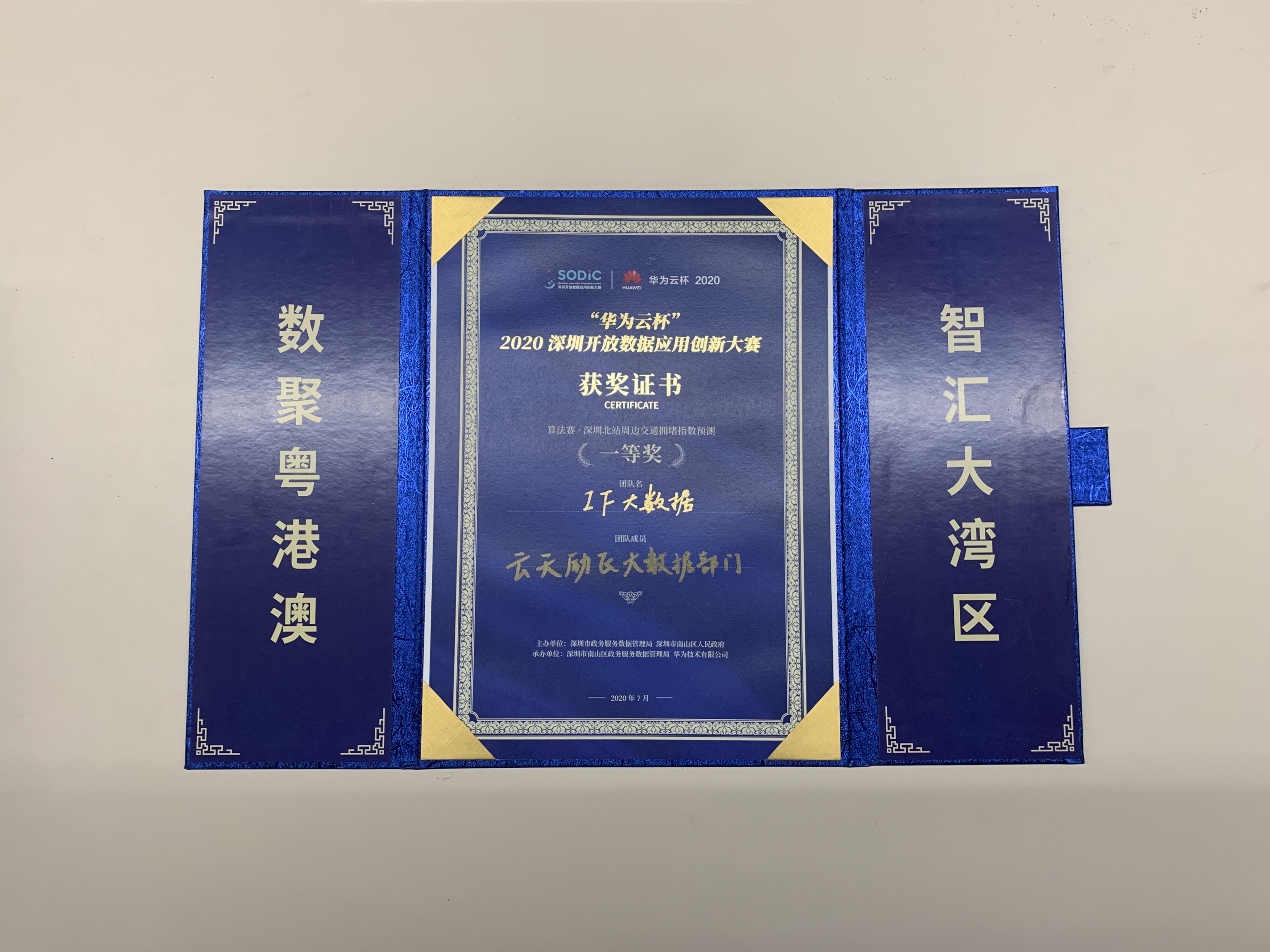 本次大赛共设置4个赛道,在以“深圳北站周边交通拥堵指数预测”为赛题的算法赛道比赛中,由BOB半岛·(中国)体育官方大数据部成员组成的“IF大数据”团队荣获一等奖。